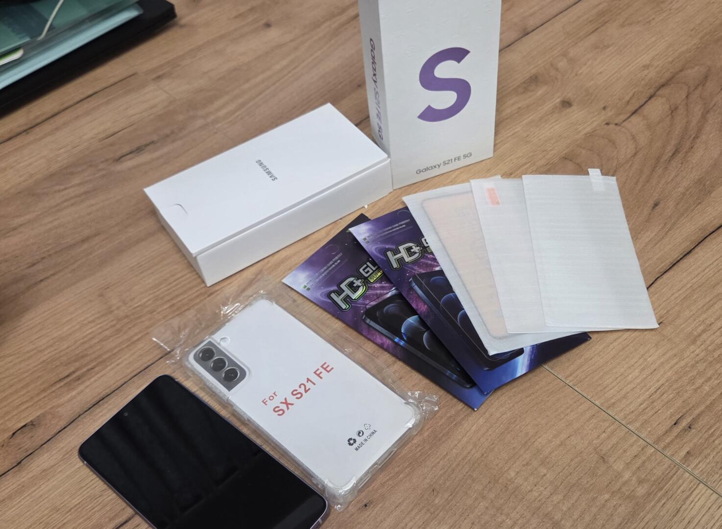 Smartfon Samsung S21 Fe w kolorze lawendowym, w stanie idealnym. Używany przez kobietę. Wyposażony w zaawansowany aparat i szybki procesor Qualcomm Snapdragon 888 zapewniający płynną pracę. Pamięć 256GB oraz RAM 8 GB. Sprzedaję z widocznymi akcesoriami.