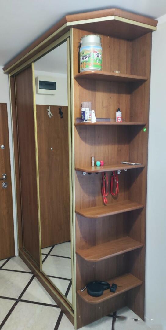 Szafa do przedpokoju z lustrem. Używana w stanie dobrym- niewielkie ślady użytkowania. Łączna szerokość 173cm w tym 150cm szafy i 20 cm półki. Wysokość 2,5m. Do odbioru osobistego. Najlepiej samemu rozkręcić by później łatwiej było złożyć.