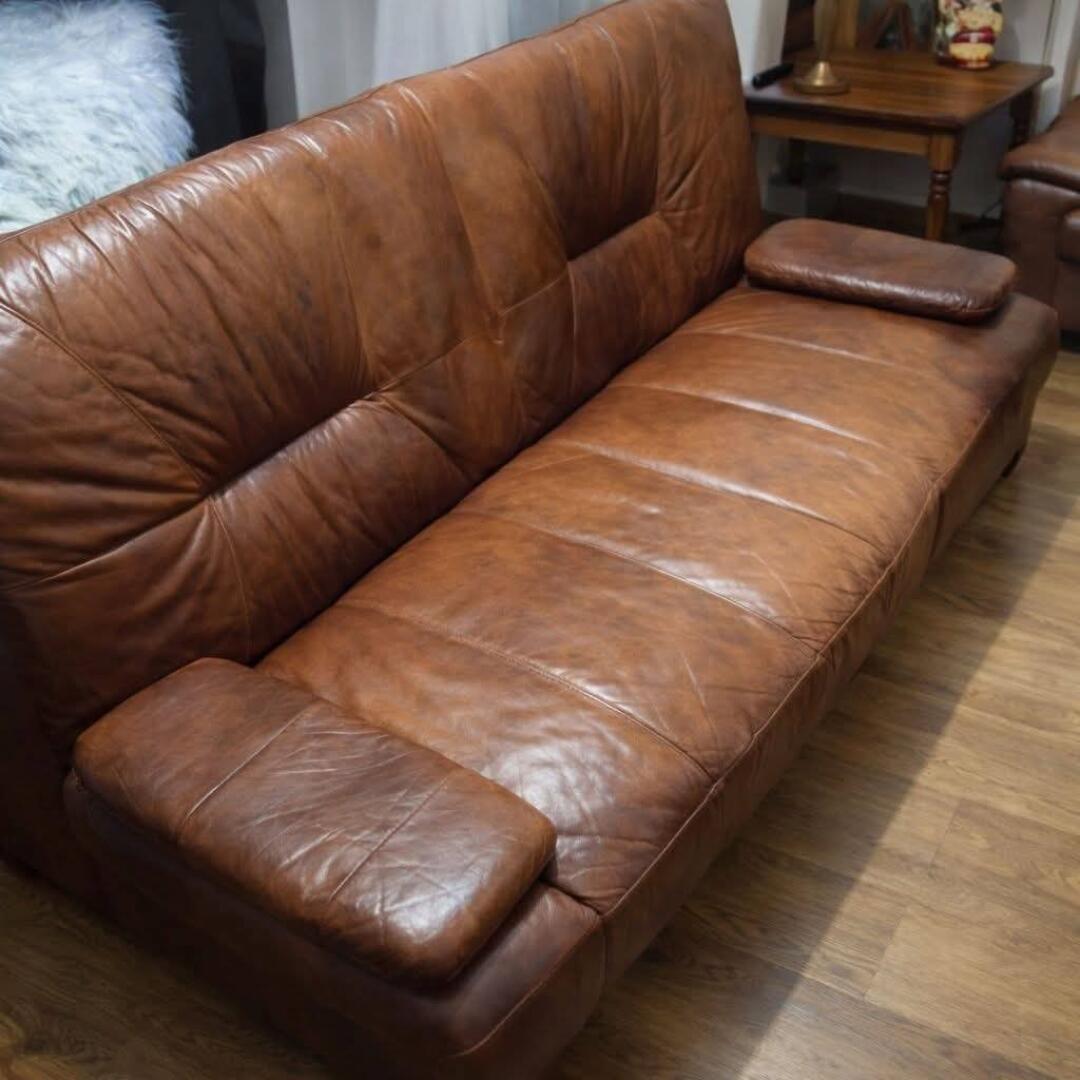 Sprzedam wersalkę ze skóry naturalnej z dwoma poduszkami na rzep.