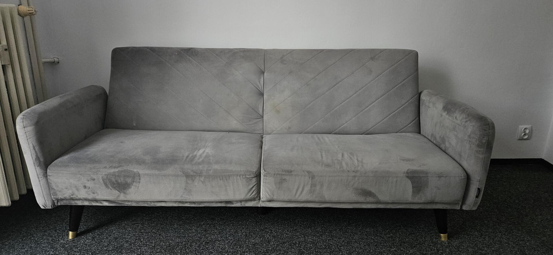 Wygodna, szara sofa, do odświeżenia/ wyprania. Posiada pikowaną tapicerkę na oparciu, która nadaje jej nowoczesny wygląd. Idealna do salonu lub sypialni. Odbiór osobisty.