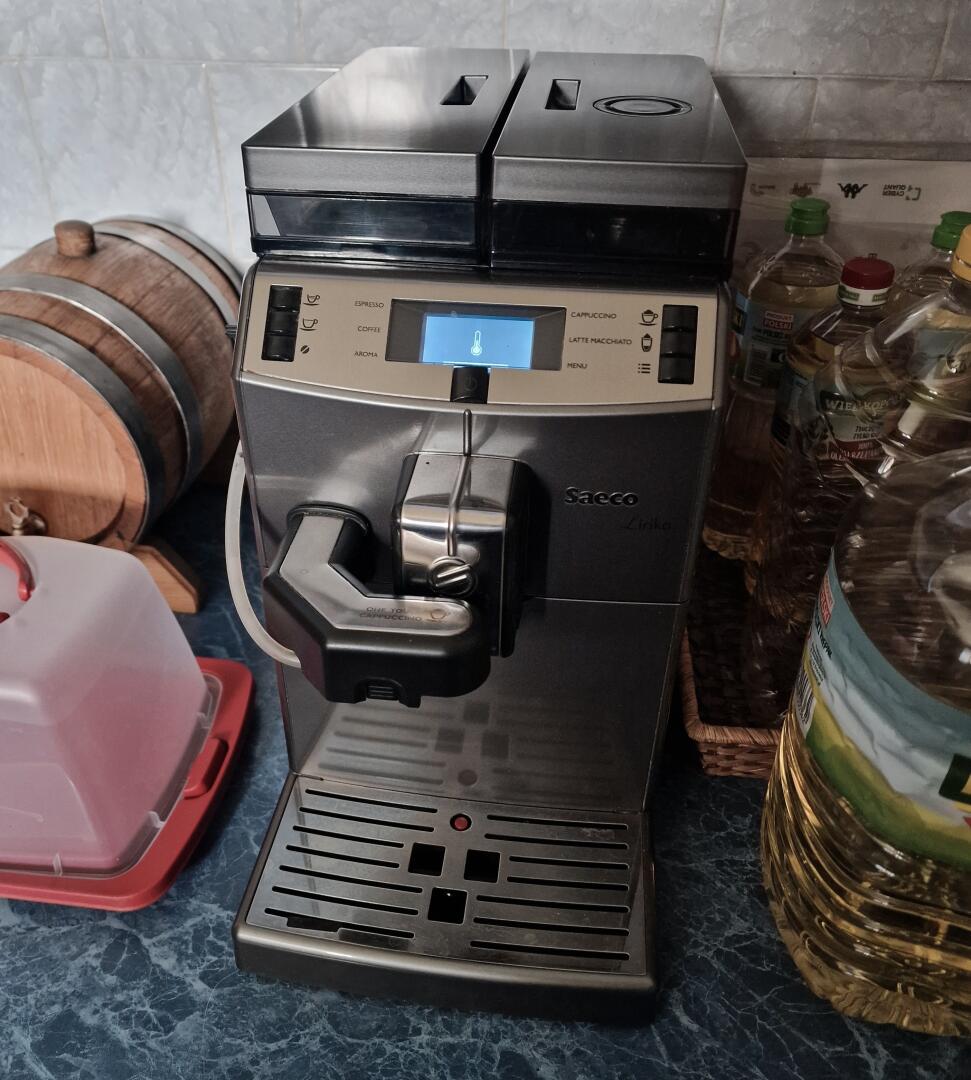 Saeco Lirika One Touch Cappuccino. Po włączeniu pojawia się klucz i kod 15. Od nowości u mnie. Sprzedaję jako uszkodzony.